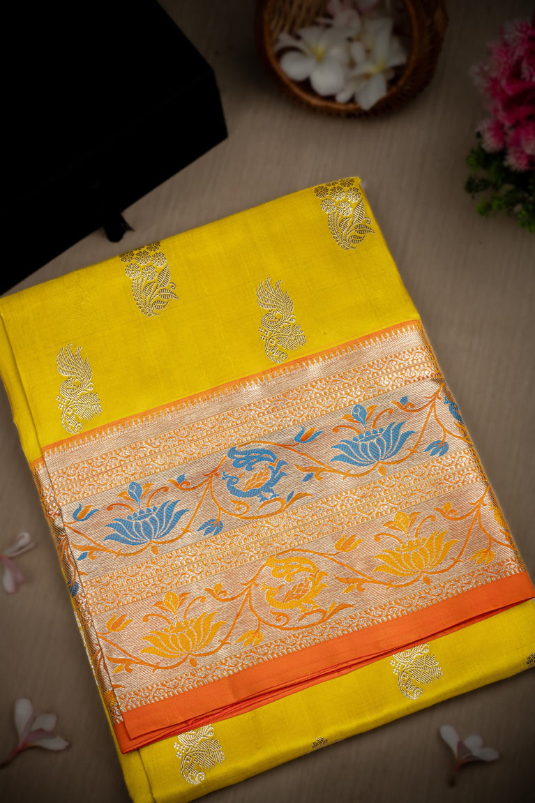 Mandir Mustard & Saffron Venkatagiri Motifs Saree