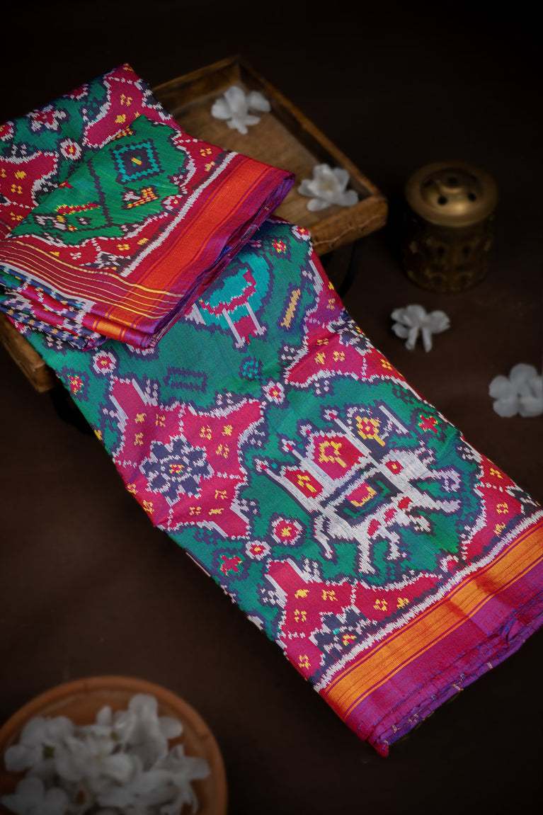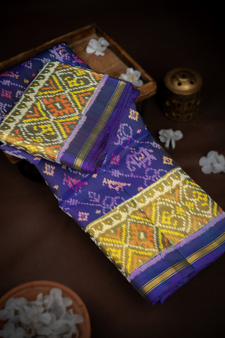 Mandir Navy Blue & Olive Green Patan Patola Ikat Saree