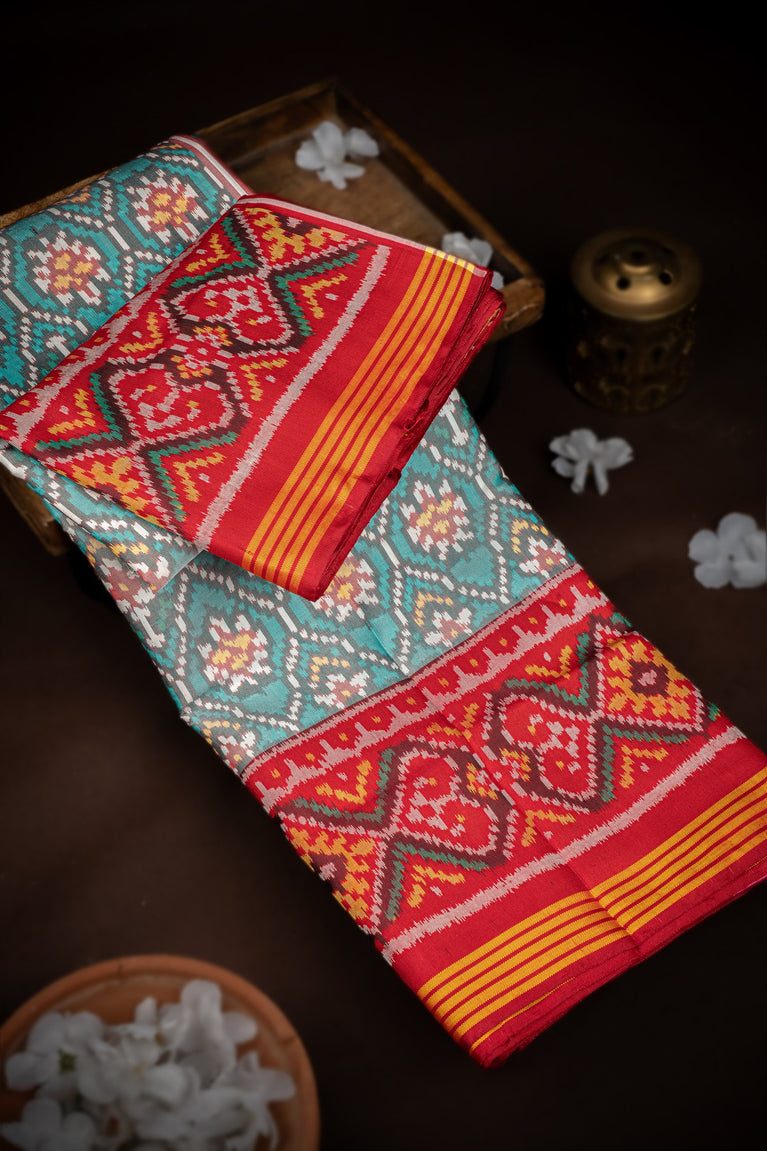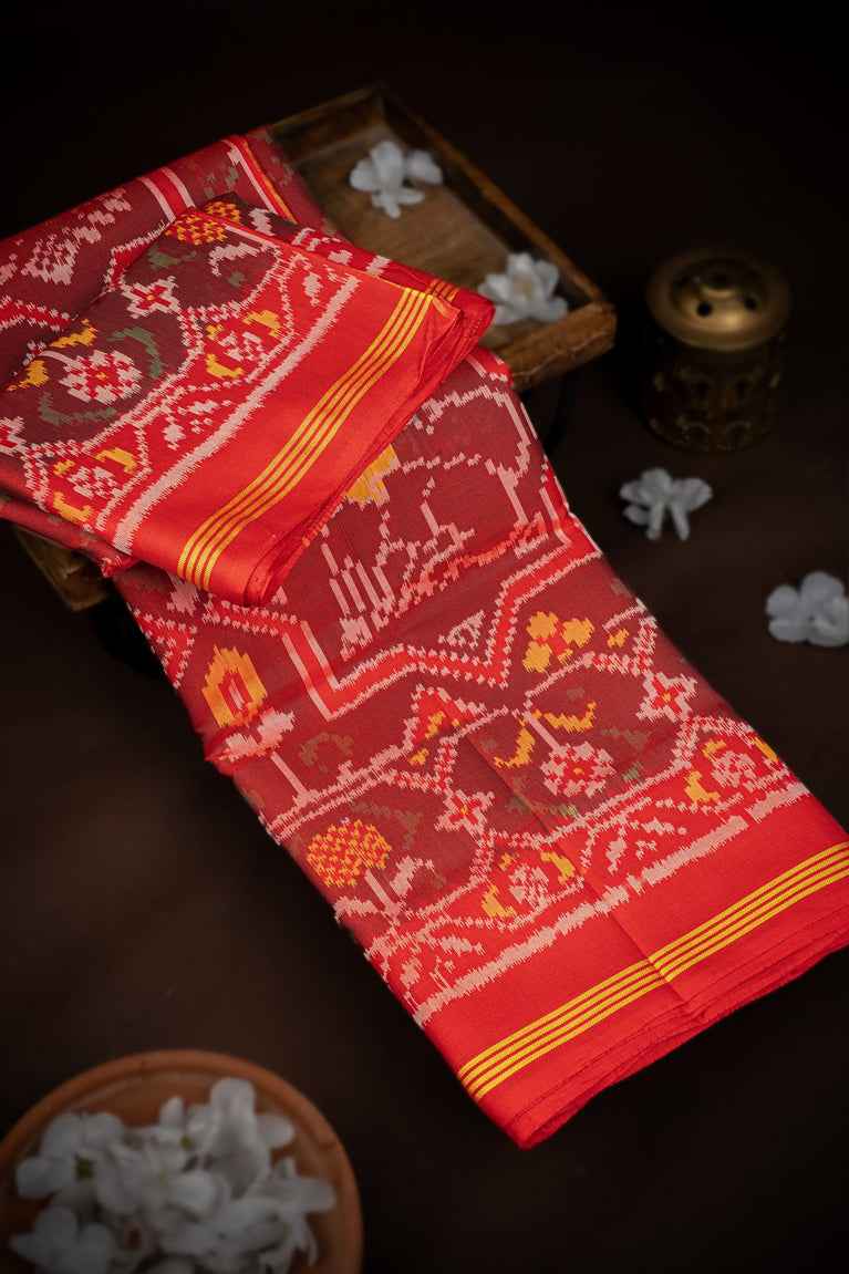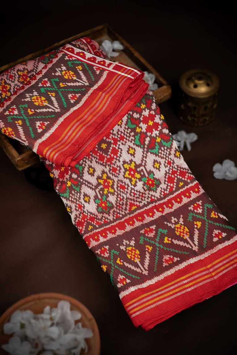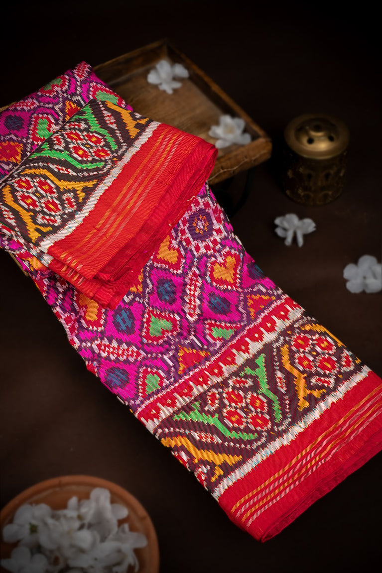 Mandir Multi-Colour & Red Patan Patola Ikat Saree