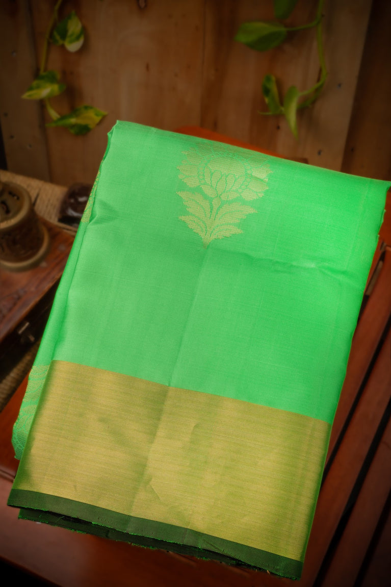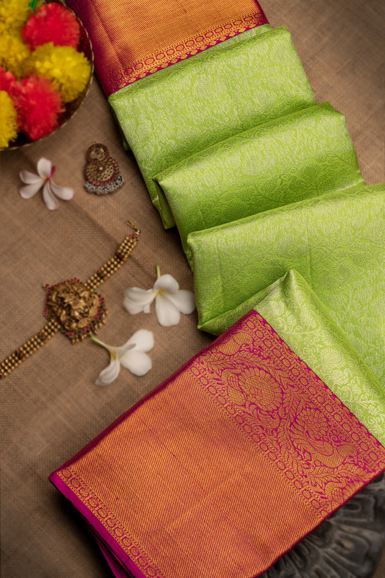 Mandir Parrot Green & Magenta Kanchipuram Floral Jaal Saree