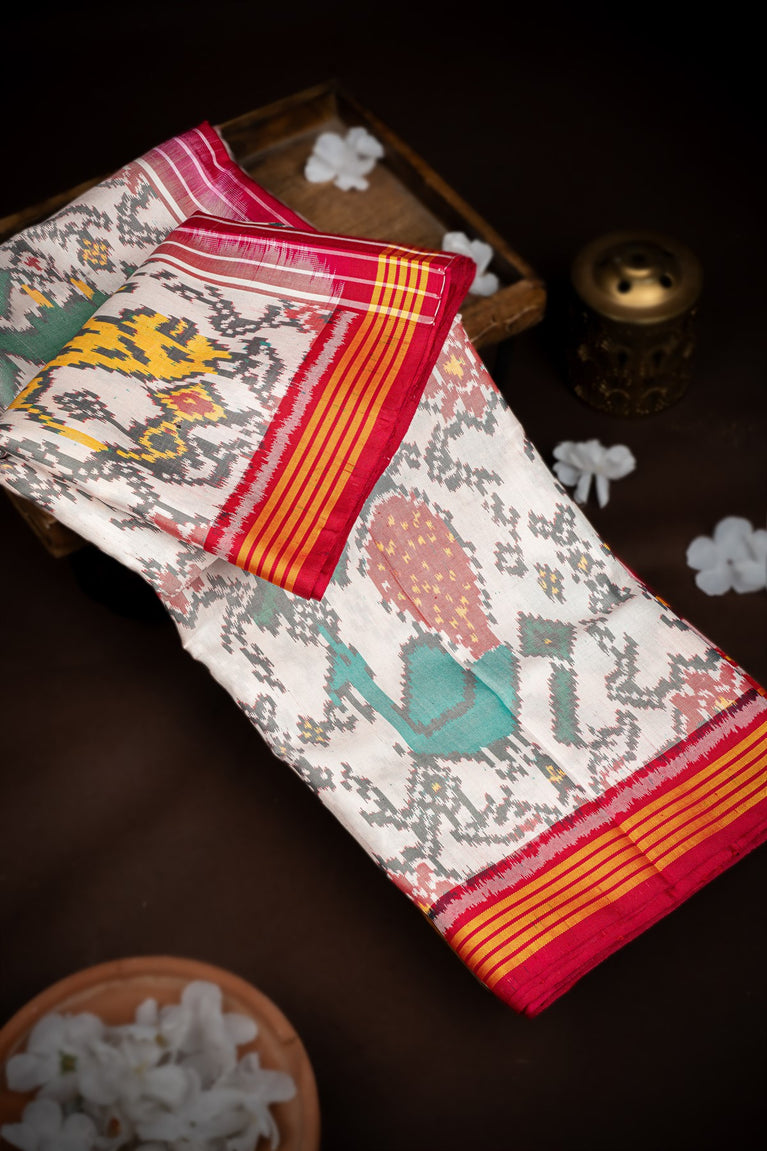 Mandir Off White & Magenta Patan Patola Ikat Saree