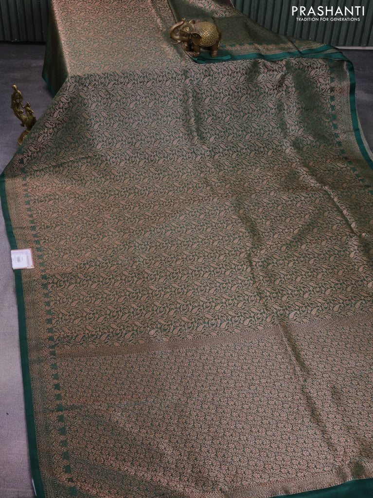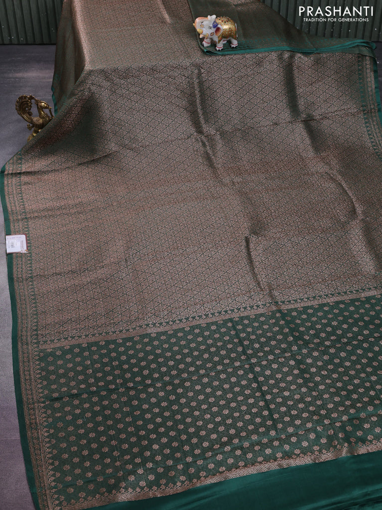 Banarasi semi crepe saree dark green with allover thread & zari woven brocade weaves and woven border