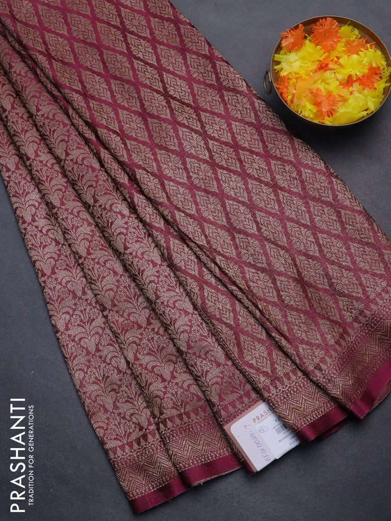 Banarasi semi crepe saree dark magenta pink with allover thread & zari woven brocade weaves and woven border