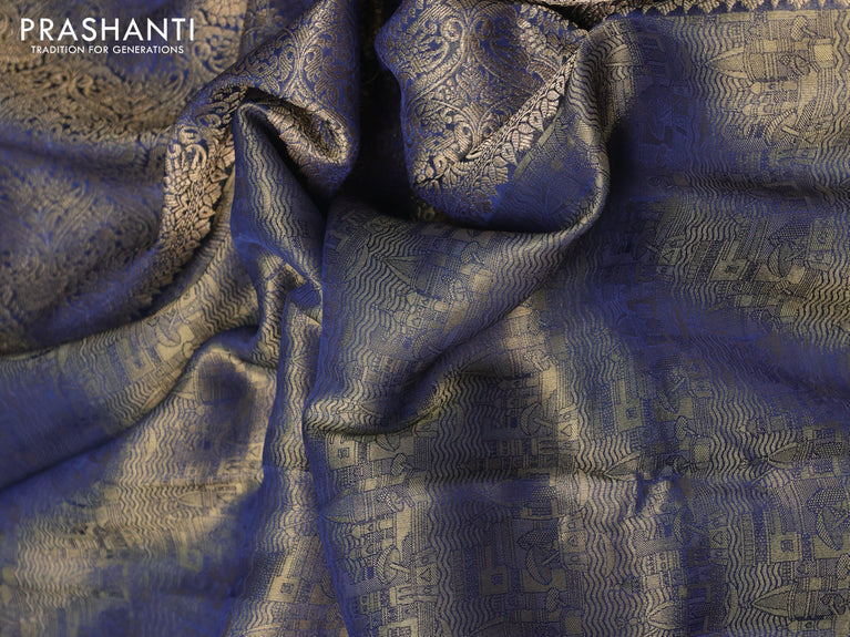 Banarasi semi crepe saree dual shade of peacock blue with allover zari woven brocade weaves and lace work border