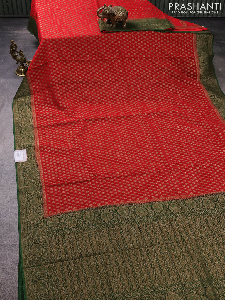 Banarasi semi georgette saree red and green with allover thread & zari woven buttas and woven border