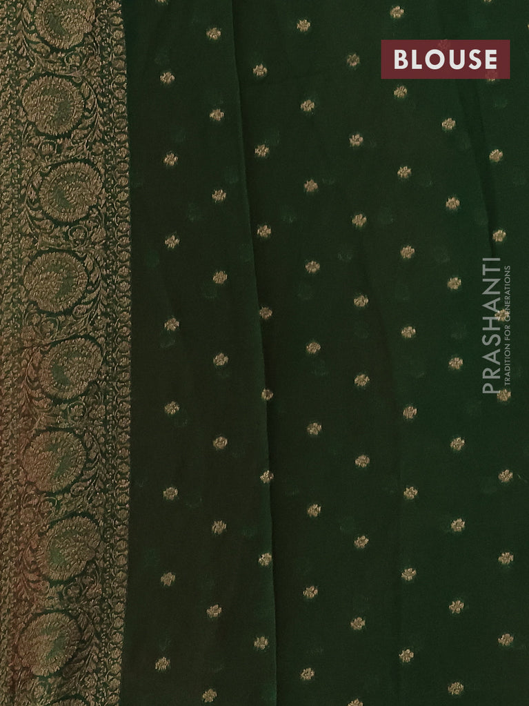 Banarasi semi georgette saree green and red with allover thread & zari woven buttas and woven border