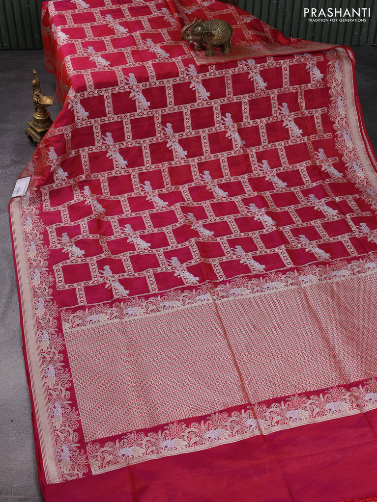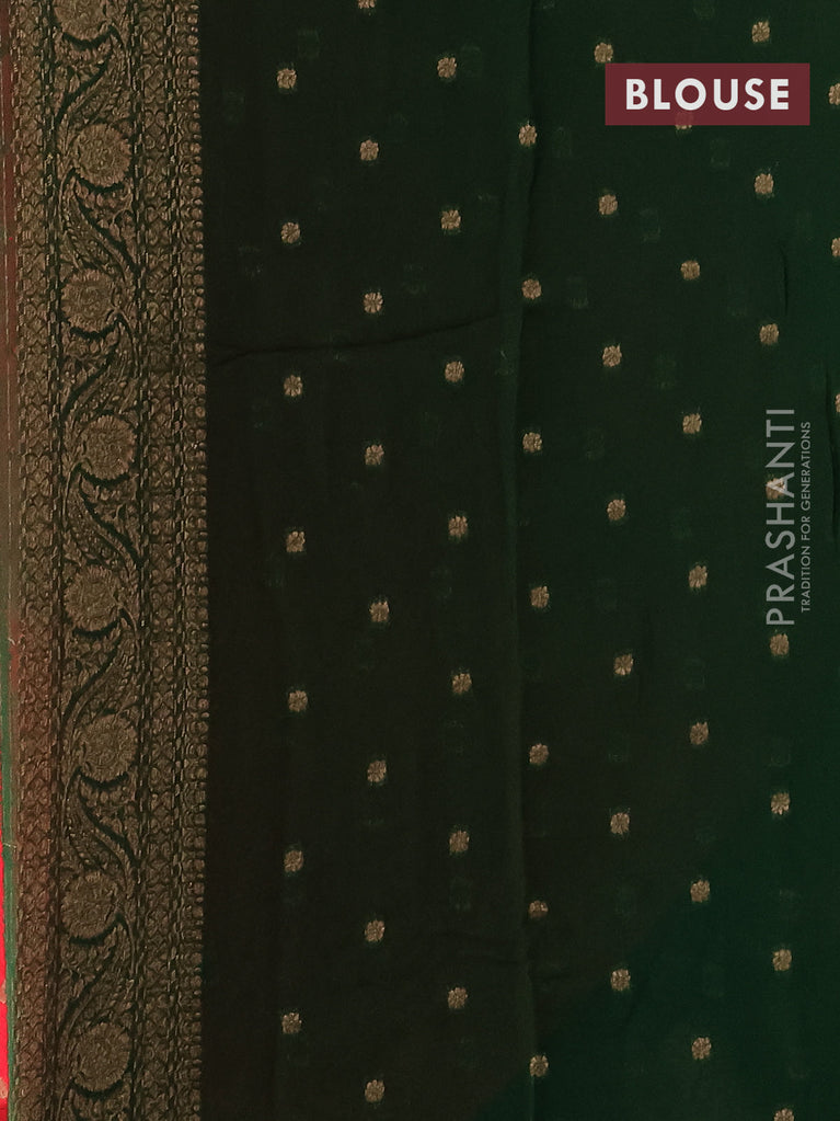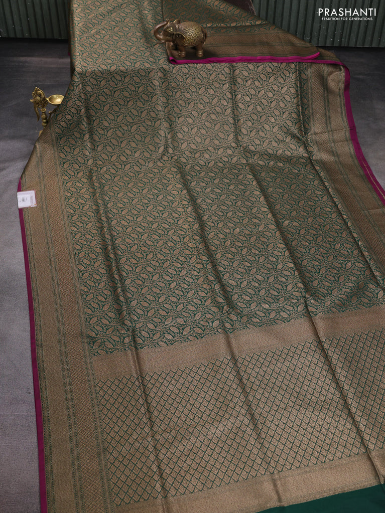 Banarasi semi katan saree green and magenta pink with allover thread & zari woven brocade pattern and woven border