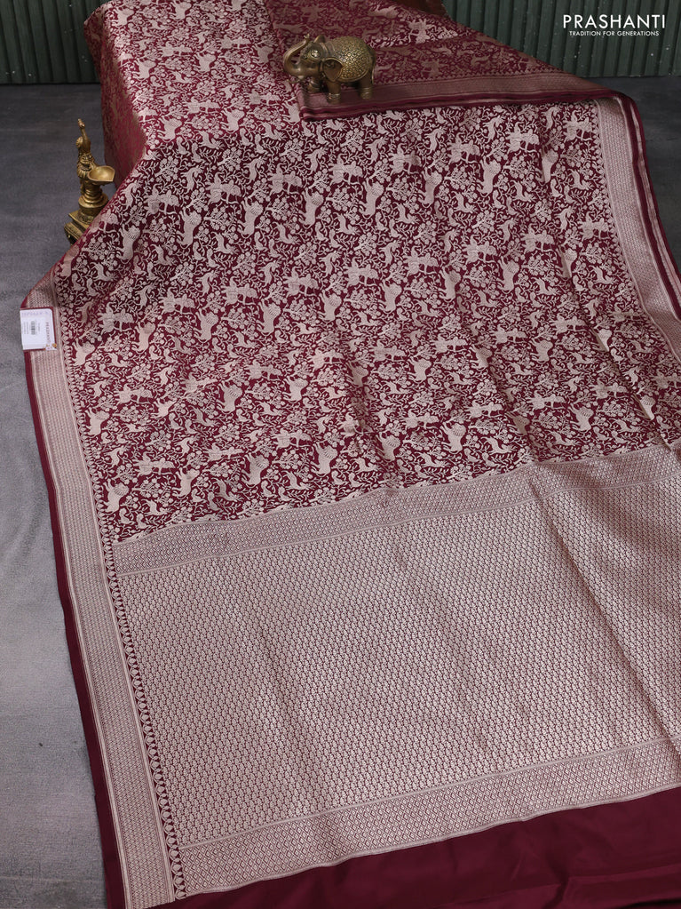 Banarasi semi katan saree deep maroon with allover thread & zari brocade weaves and woven border