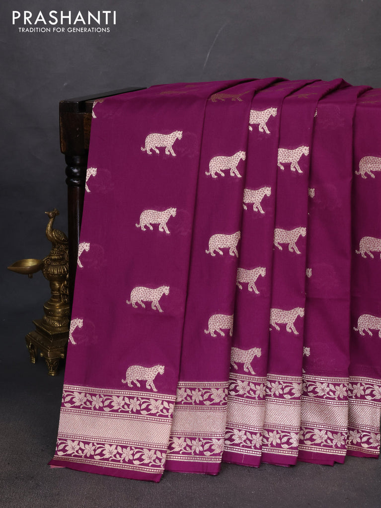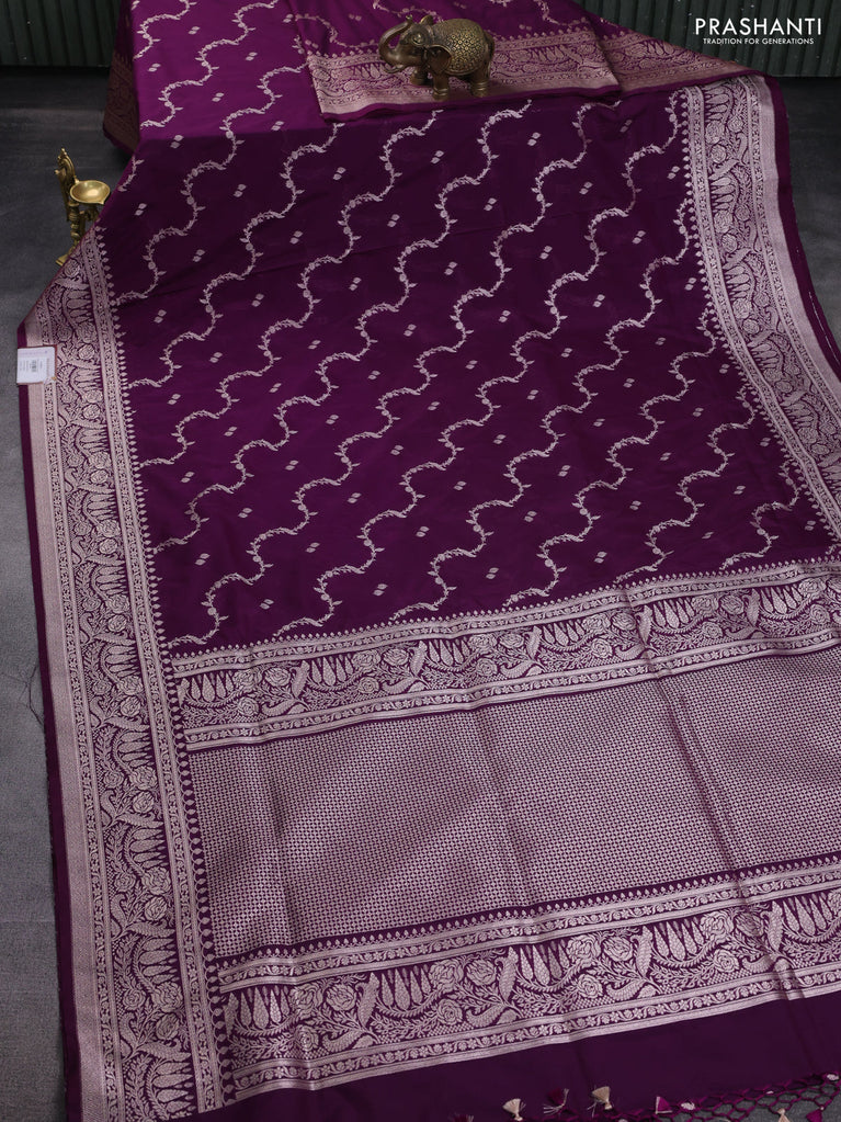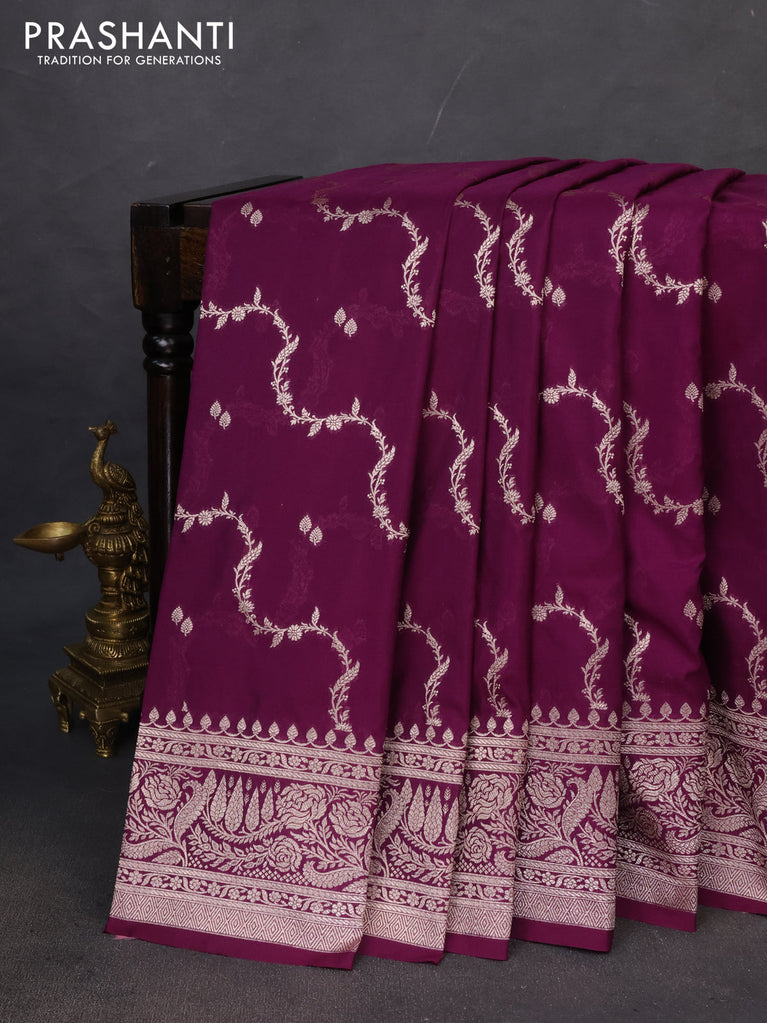 Banarasi semi katan saree deep purple with allover zari weaves and woven border