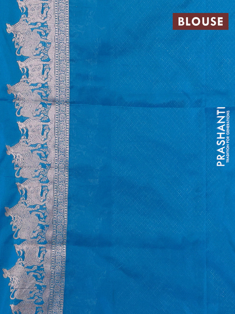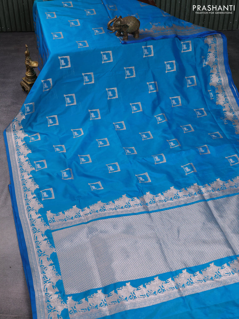 Banarasi semi katan saree dual shade of peacock blue with silver & gold zari woven buttas and rich zari woven border