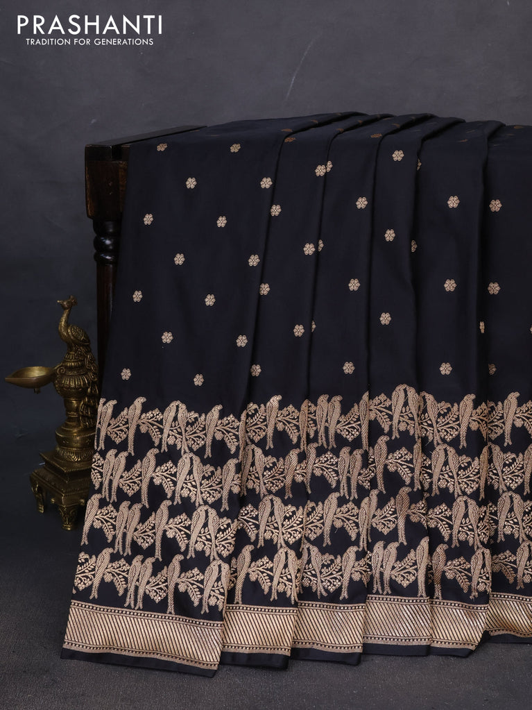 Banarasi semi katan saree black with zari woven buttas and zari woven border