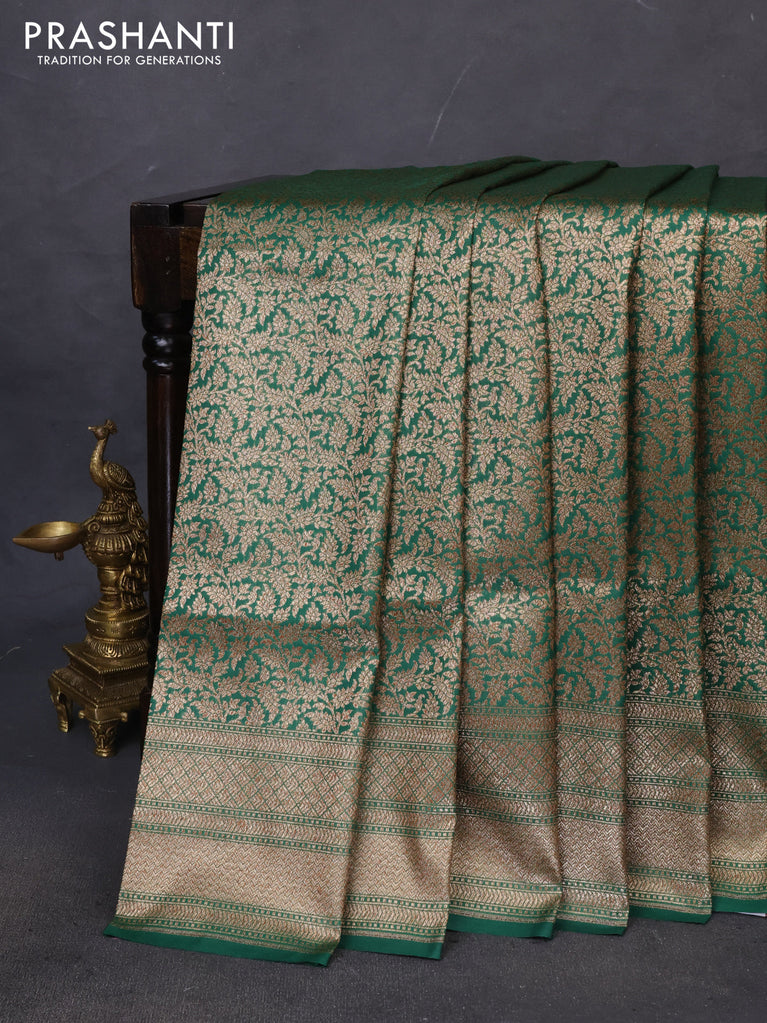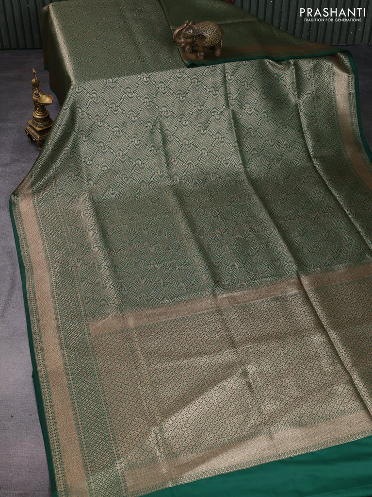Banarasi semi katan saree green with allover thread & zari brocade weaves and woven border