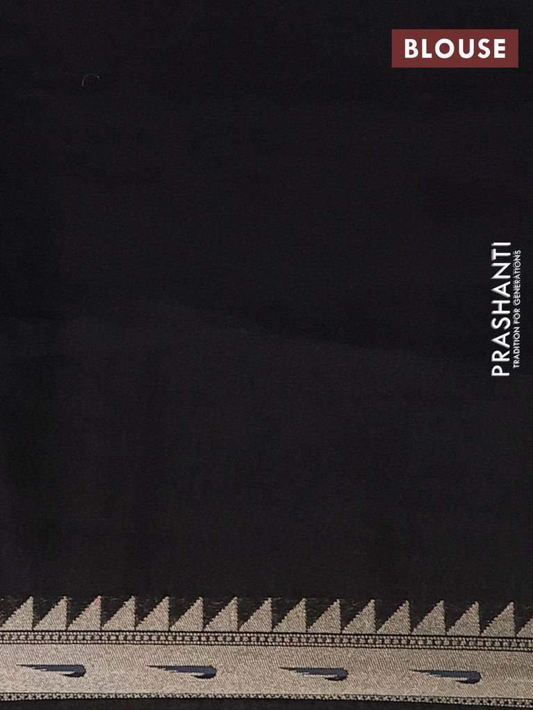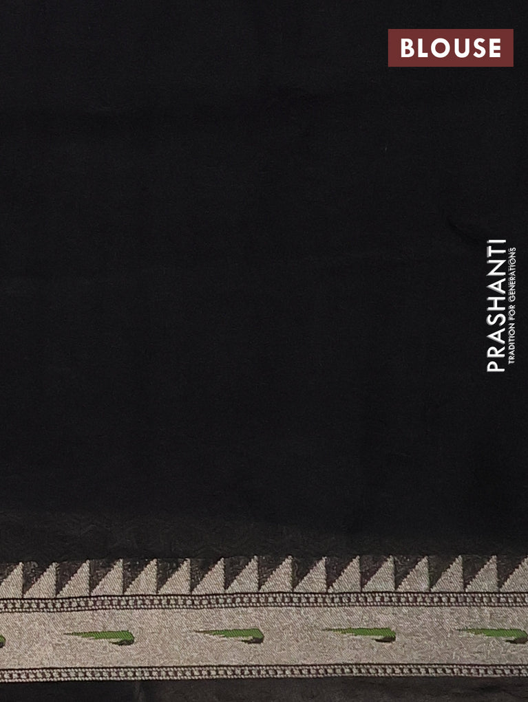 Banarasi semi raw silk saree black with allover silver zari woven paithani weaves and silver zari woven border