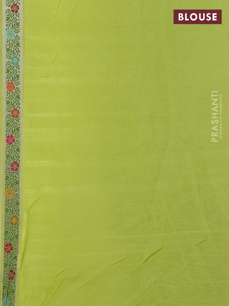 Banarasi semi raw silk saree fluorescent green with allover silver zari woven paithani weaves and woven border