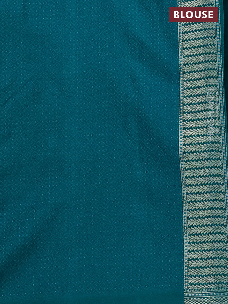 Banarasi semi mushru silk saree teal green with allover thread & zari weaves and zari woven border