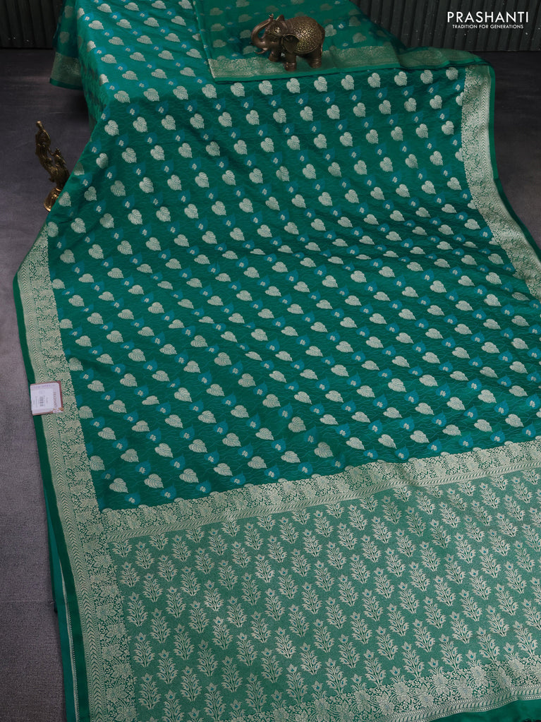 Banarasi semi mushru silk saree teal green with thread & zari woven buttas and zari woven border