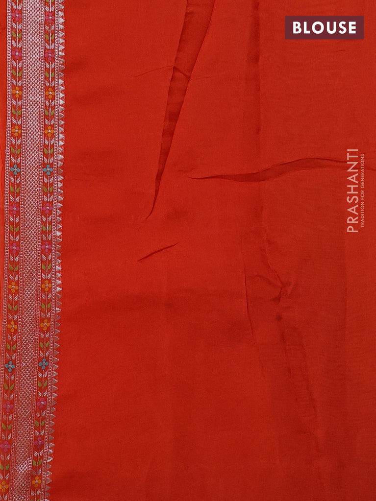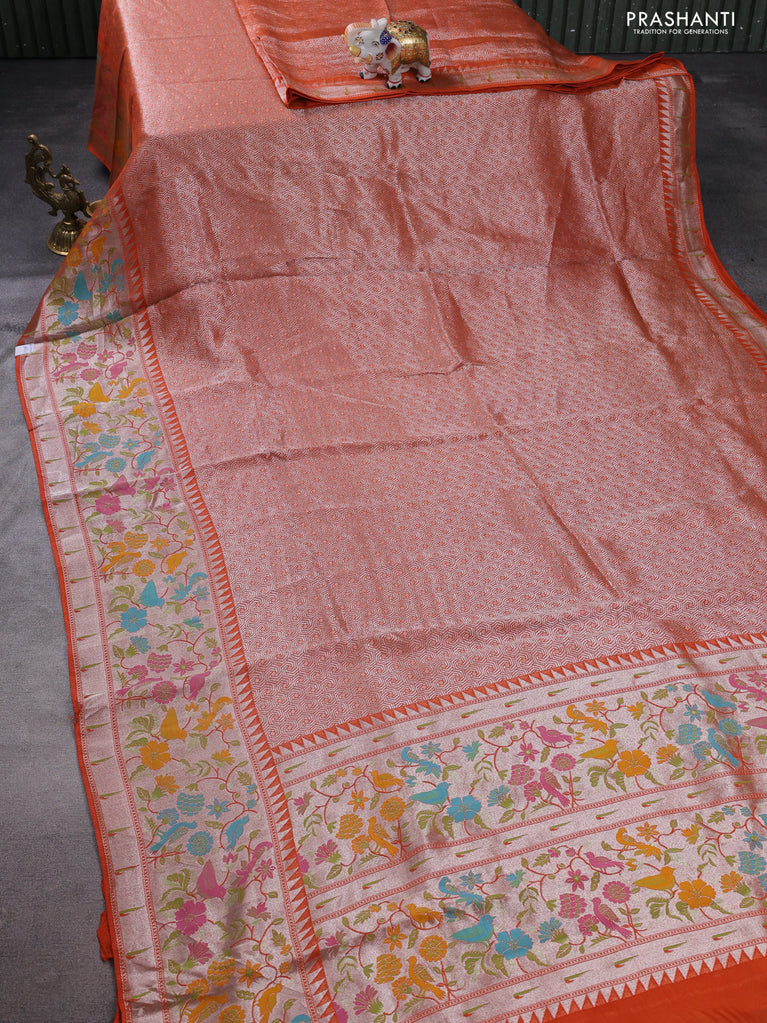 Banarasi semi raw silk saree orange with allover silver zari woven brocade weaves and floral design paithani border