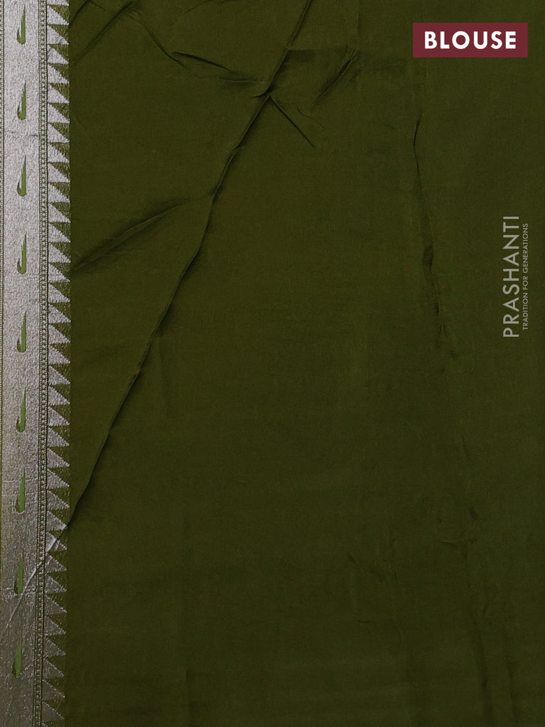 Banarasi semi raw silk saree mehendi green with allover silver woven brocade weaves and floral design paithani border