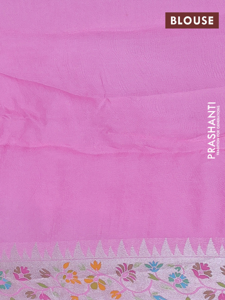 Banarasi semi raw silk saree light pink with allover silver zari woven paithani weaves and woven border