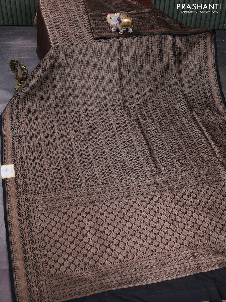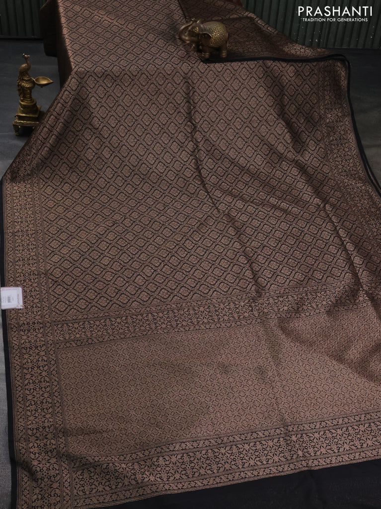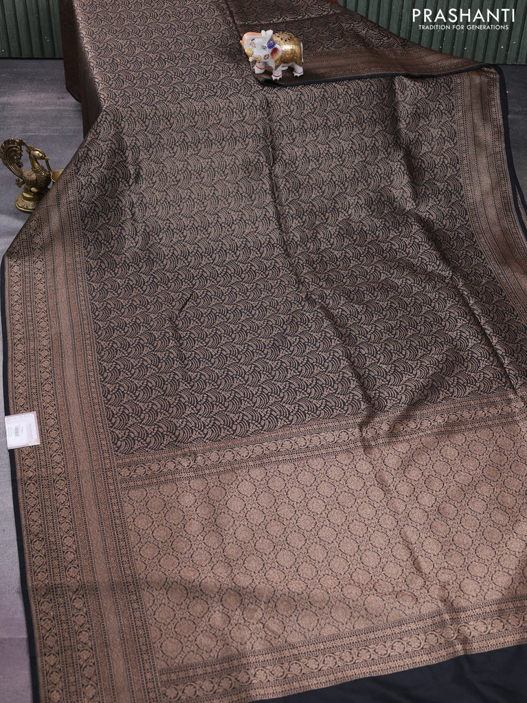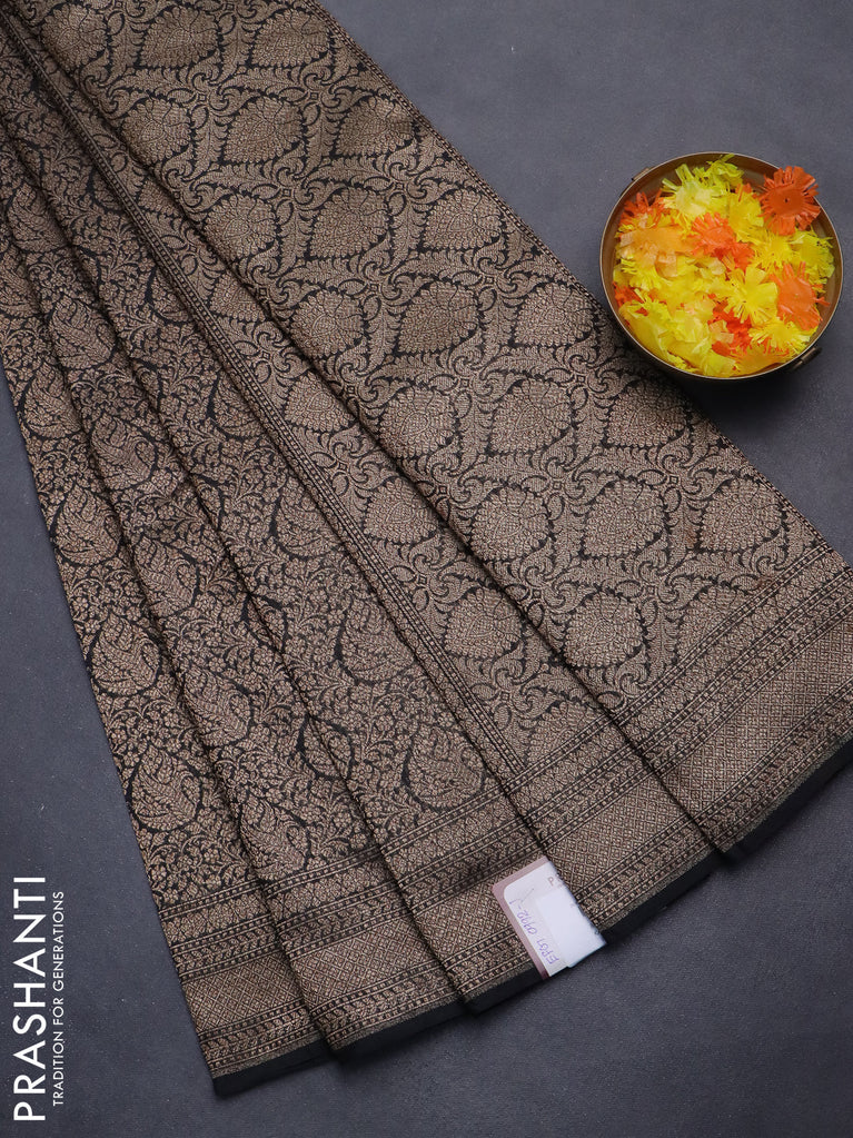 Banarasi semi silk saree black with allover thread & zari weaves and woven border