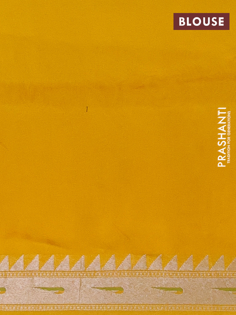 Banarasi semi raw silk saree yellow with allover silver zari woven paithani weaves and silver zari woven border