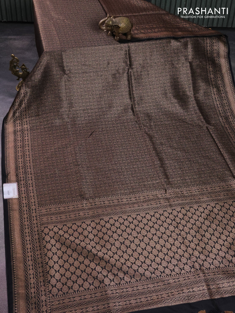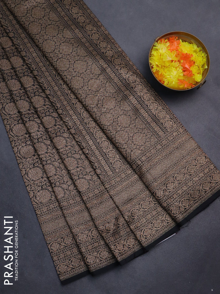 Banarasi semi silk saree black with allover thread & zari weaves and woven border