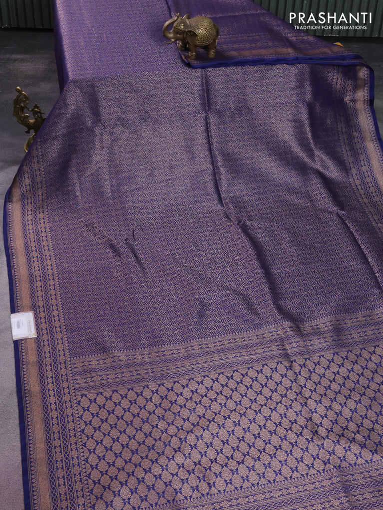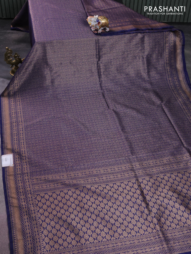 Banarasi semi silk saree blue with allover thread & zari weaves and woven border