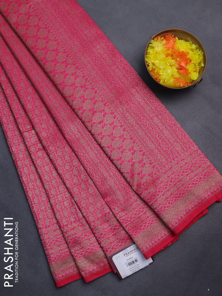 Banarasi semi silk saree pink with allover thread & zari weaves and woven border