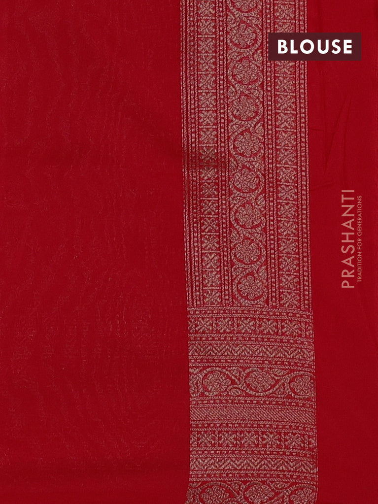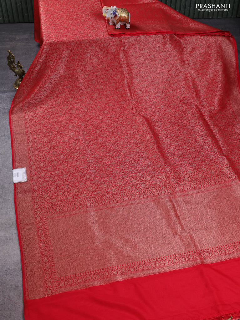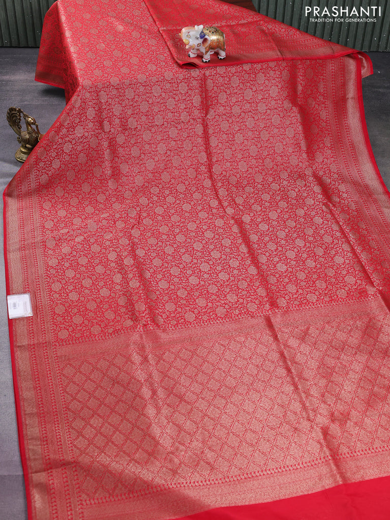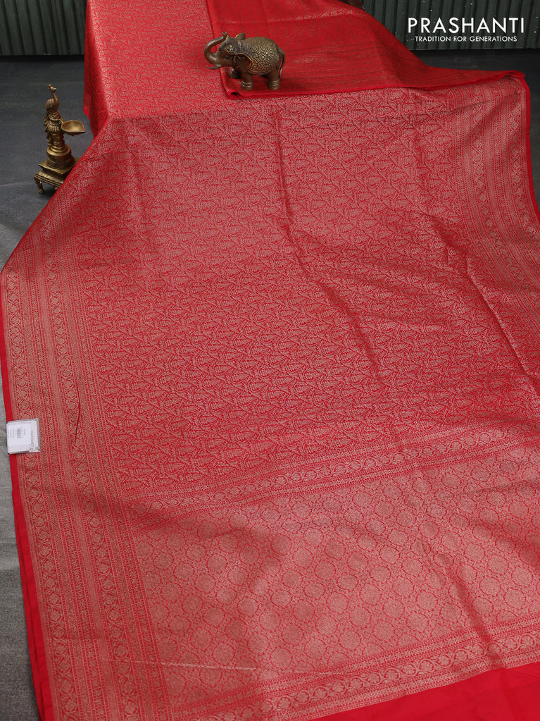 Banarasi semi silk saree red with allover thread & zari weaves and woven border