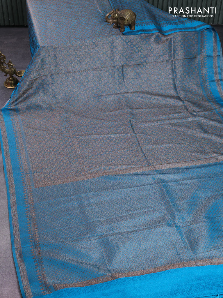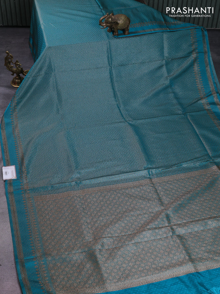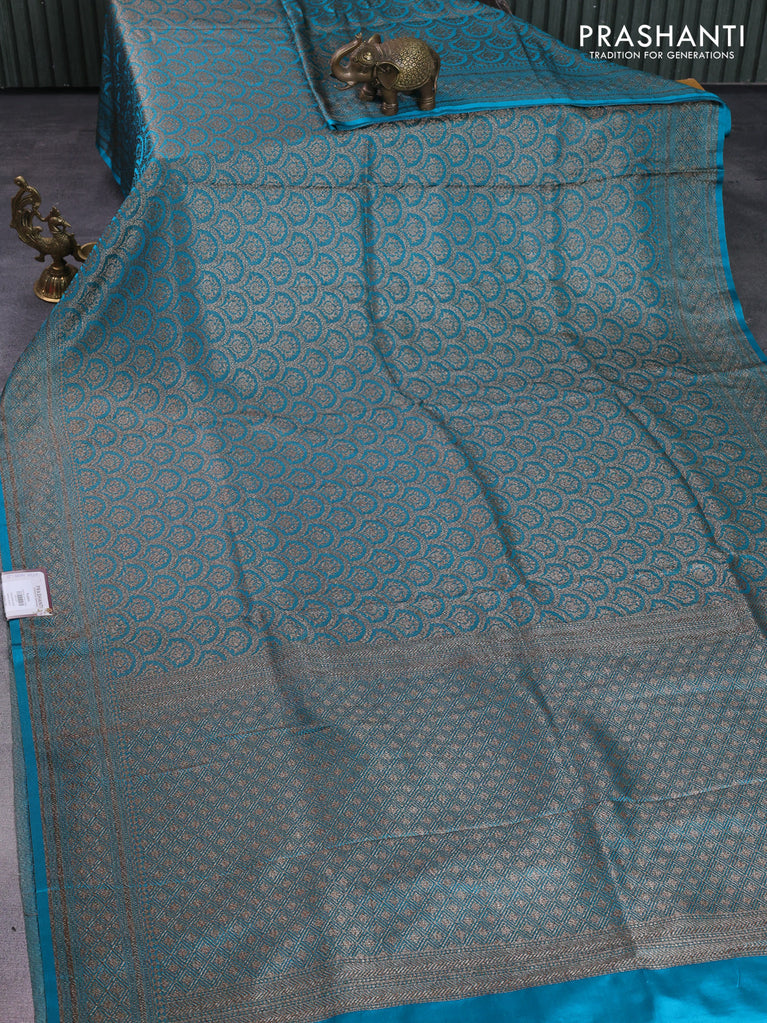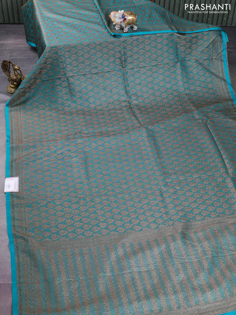 Banarasi semi silk saree teal blue with allover thread & zari weaves and woven border