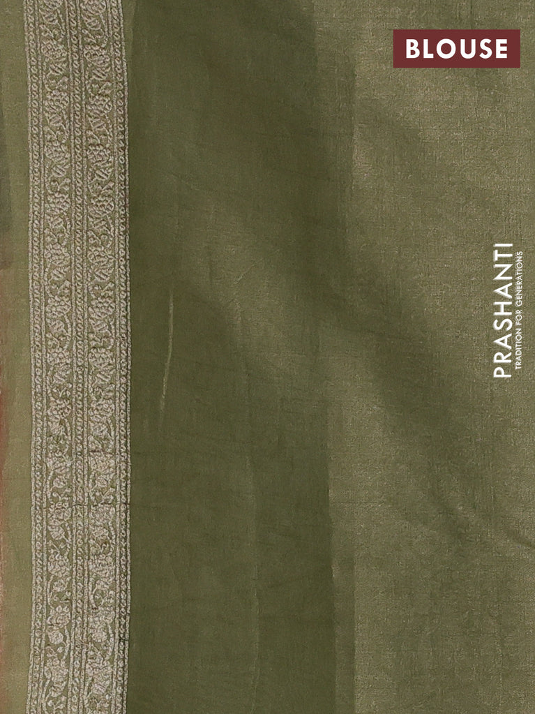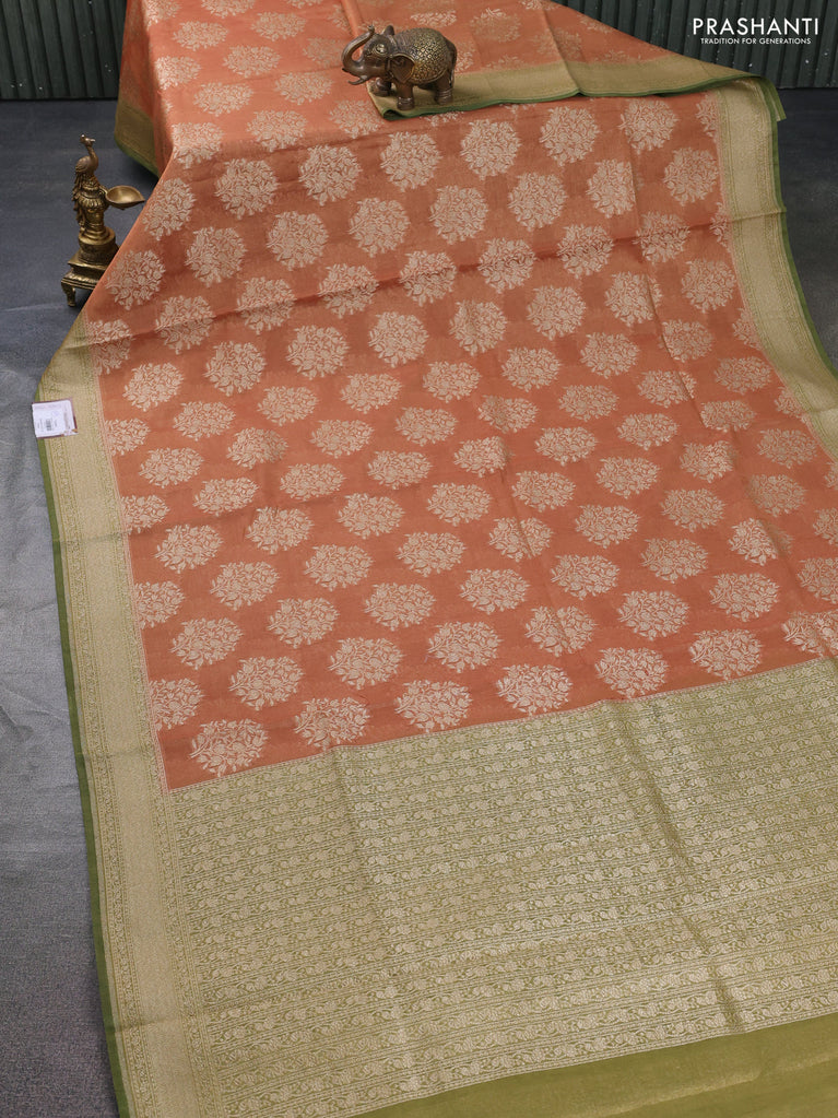 Banarasi tissue silk cotton saree rust shade and green shade with zari woven buttas and woven border