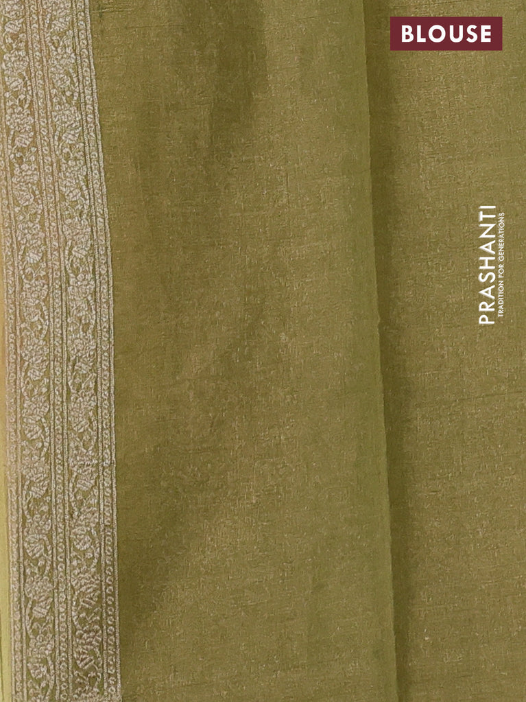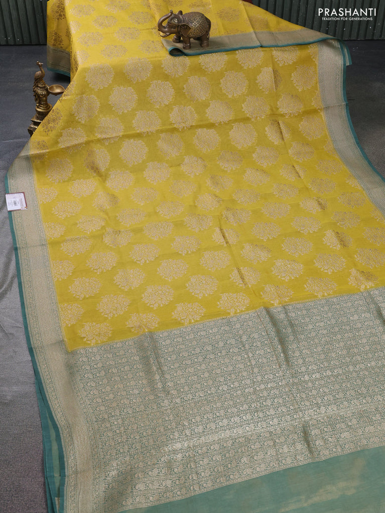Banarasi tissue silk cotton saree mustard yellow and pastel green with allover thread & zari woven butta weaves and woven border