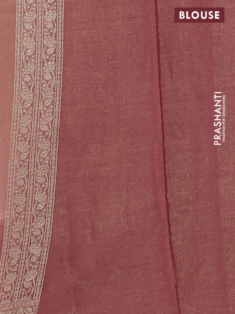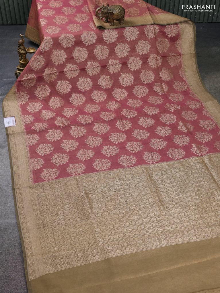 Banarasi tissue semi silk saree sandal and mild peach pink with zari weaves & buttas and zari woven border