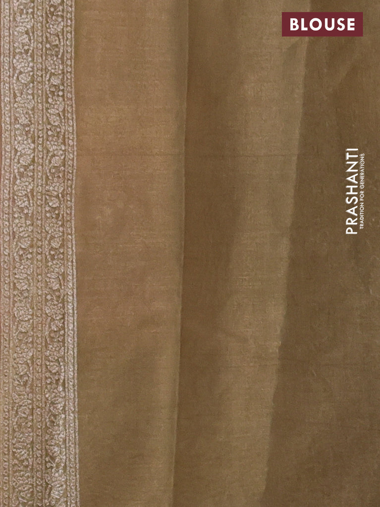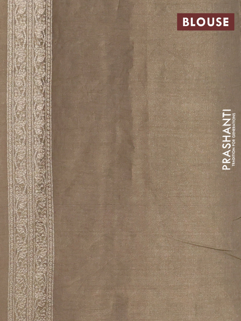 Banarasi tissue semi silk saree sandal with zari weaves & buttas and floral zari woven butta border