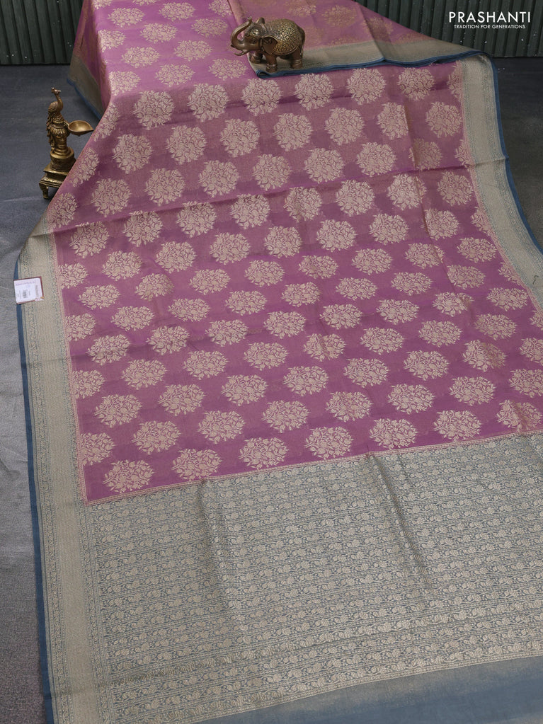 Banarasi tissue silk cotton saree pastel purple and peacock blue with allover thread & zari woven butta weaves and woven border