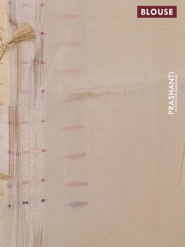 Banarasi tissue silk cotton saree sandal and maroon with zari woven buttas and woven border