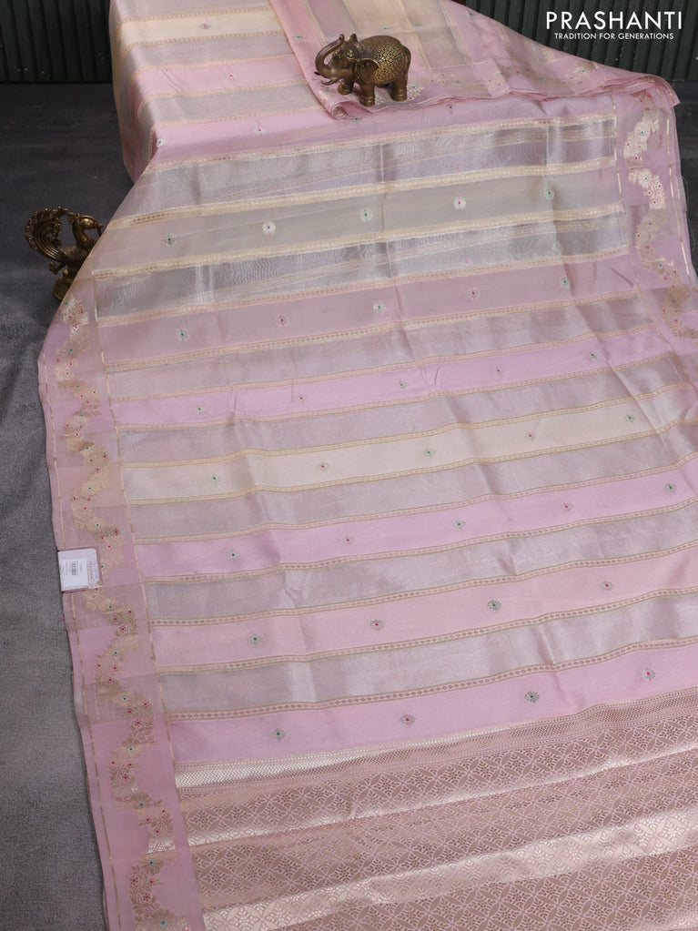 Banarasi tissue semi silk saree peach pink with zari weaves & buttas and zari woven butta border
