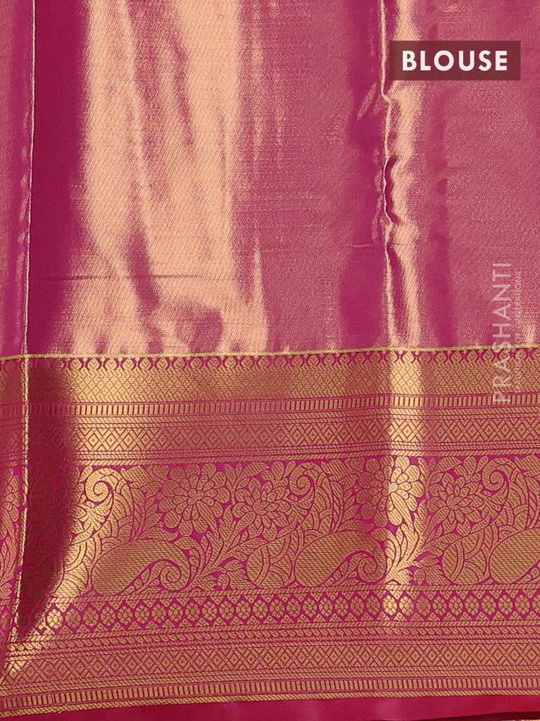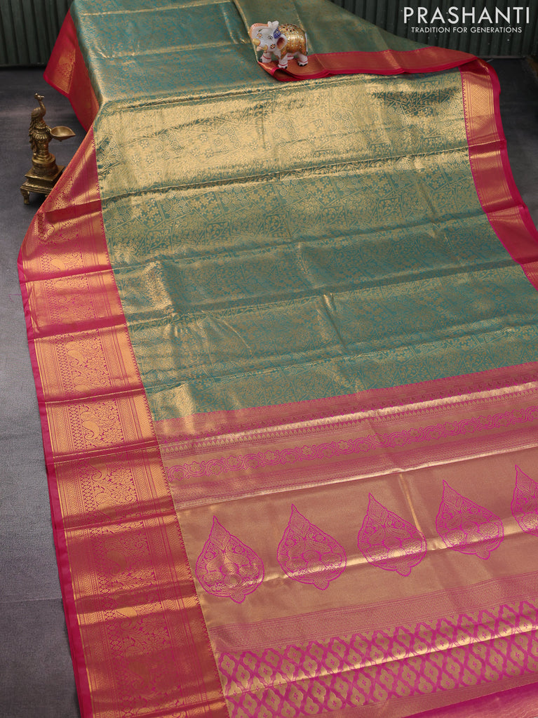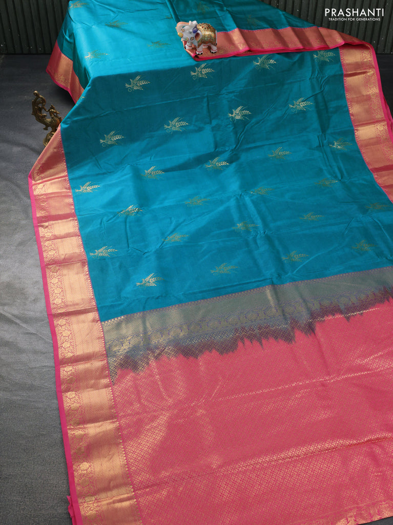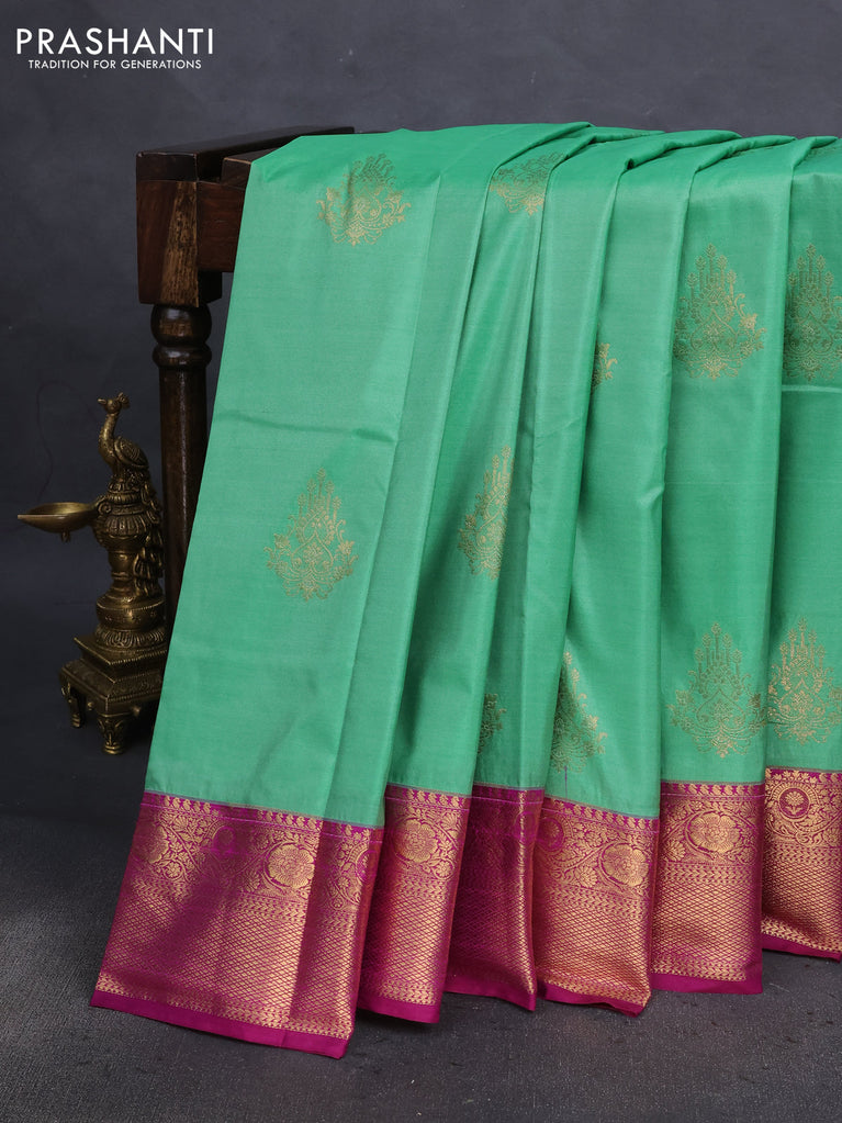 Bangalori silk saree teal green shade and magenta pink with zari woven buttas and zari woven border