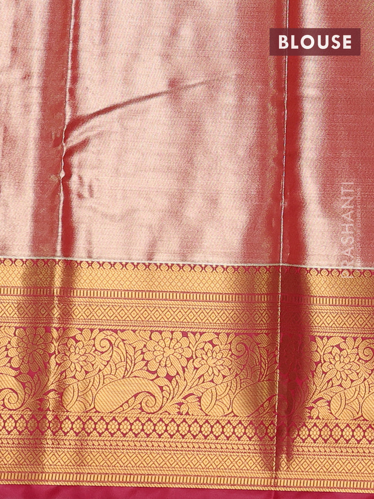 Bangalori tissue silk saree dual shade of mehendi green and reddish pink with allover zari woven brocade weaves and long zari woven border