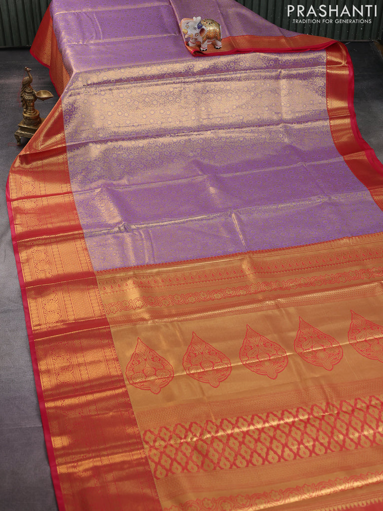 Bangalori tissue silk saree lavender and pink with allover zari woven brocade weaves and long zari woven border