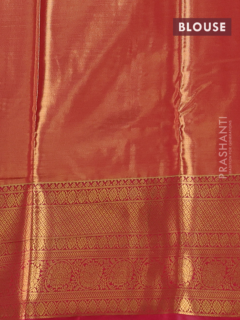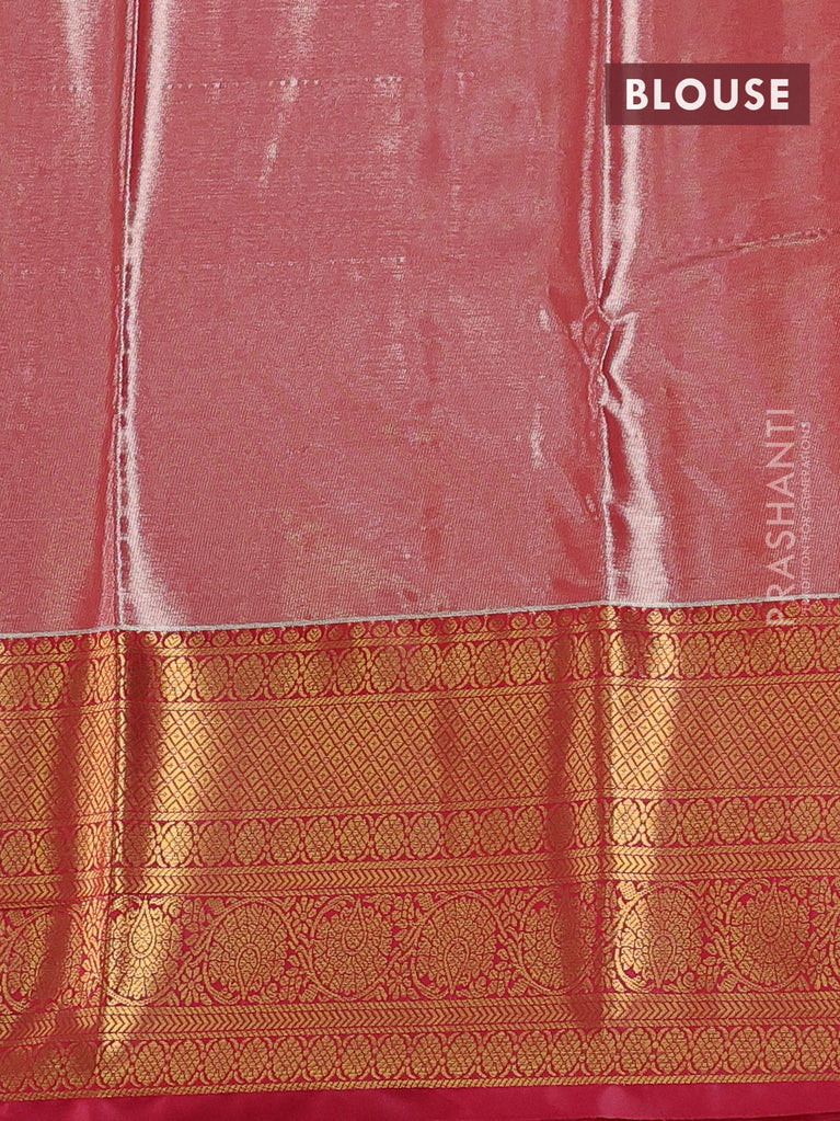 Bangalori tissue silk saree blue and reddish pink with allover zari woven brocade weaves and long zari woven border