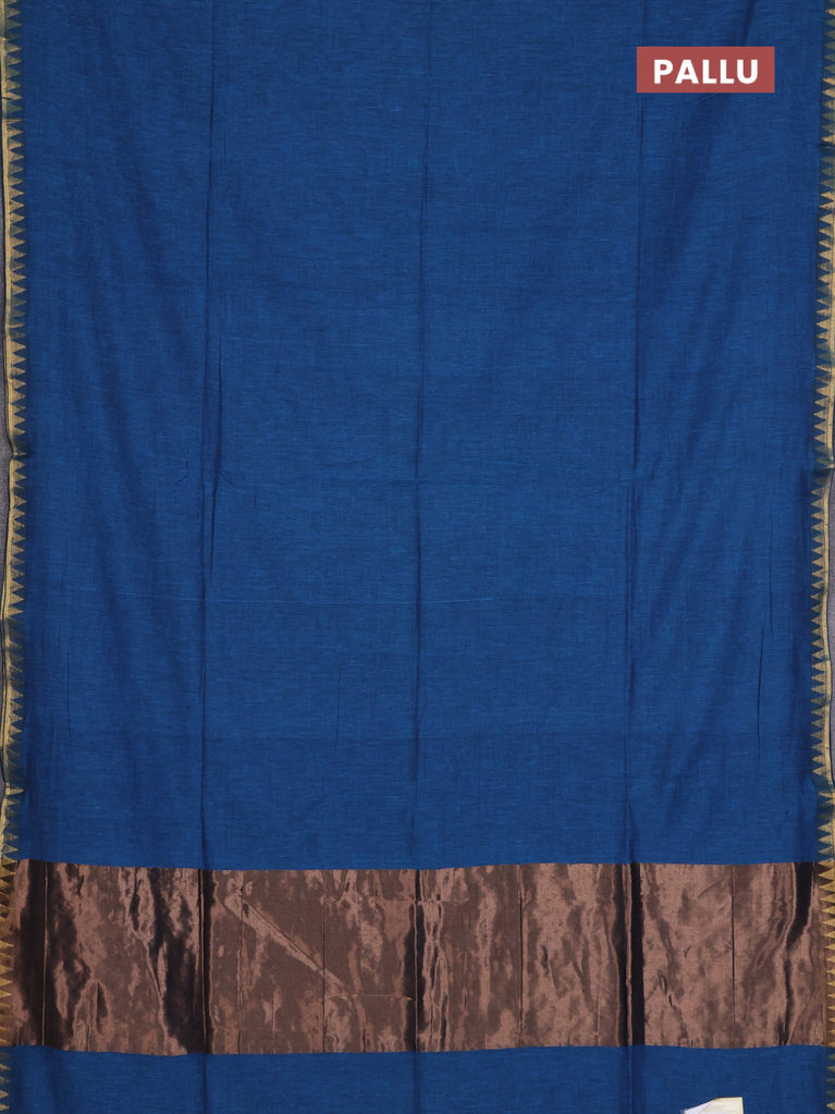 Bengal soft cotton saree cs blue with plain body and zari woven border