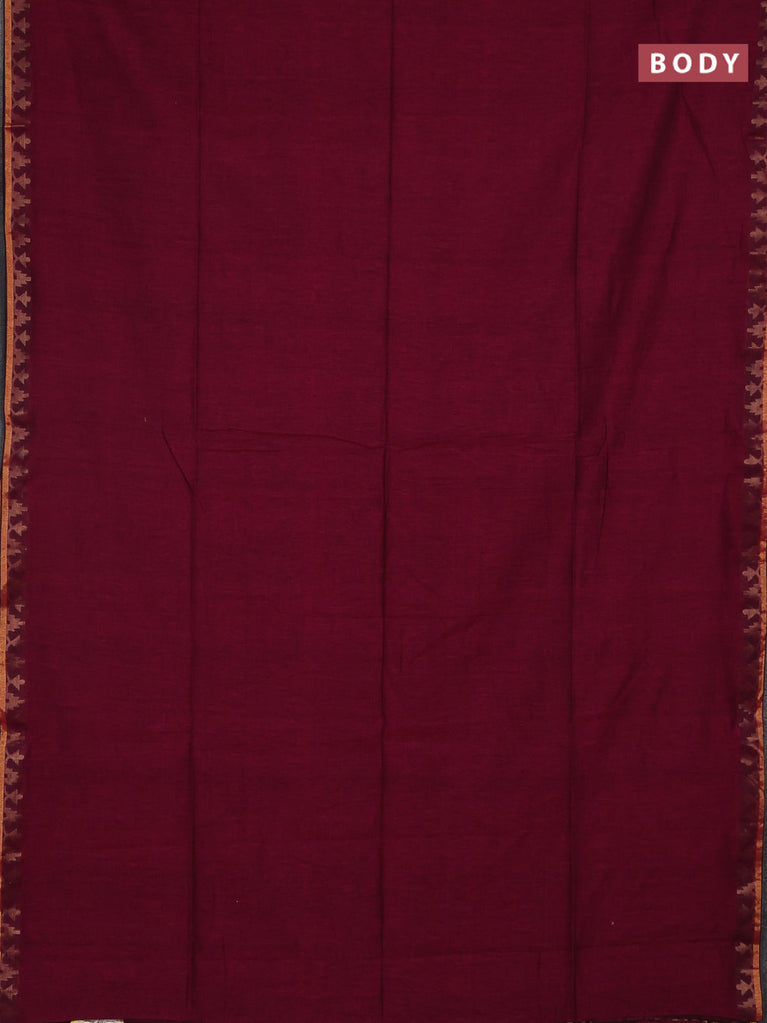 Bengal soft cotton saree dark green and deep maroon with plain body and zari woven border
