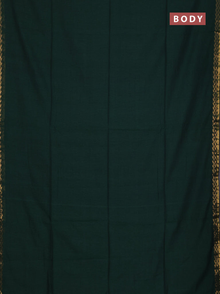Bengal soft cotton saree dark green and dark mustard with plain body and zari woven border