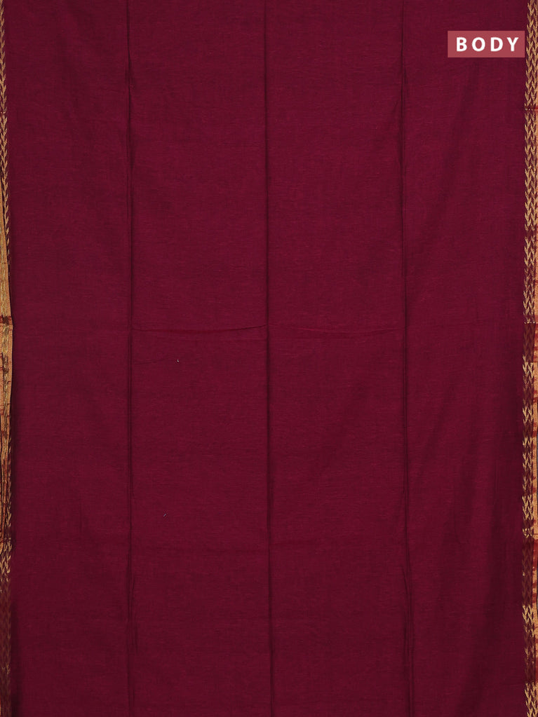 Bengal soft cotton saree dark magenta pink and blue with plain body and zari woven border