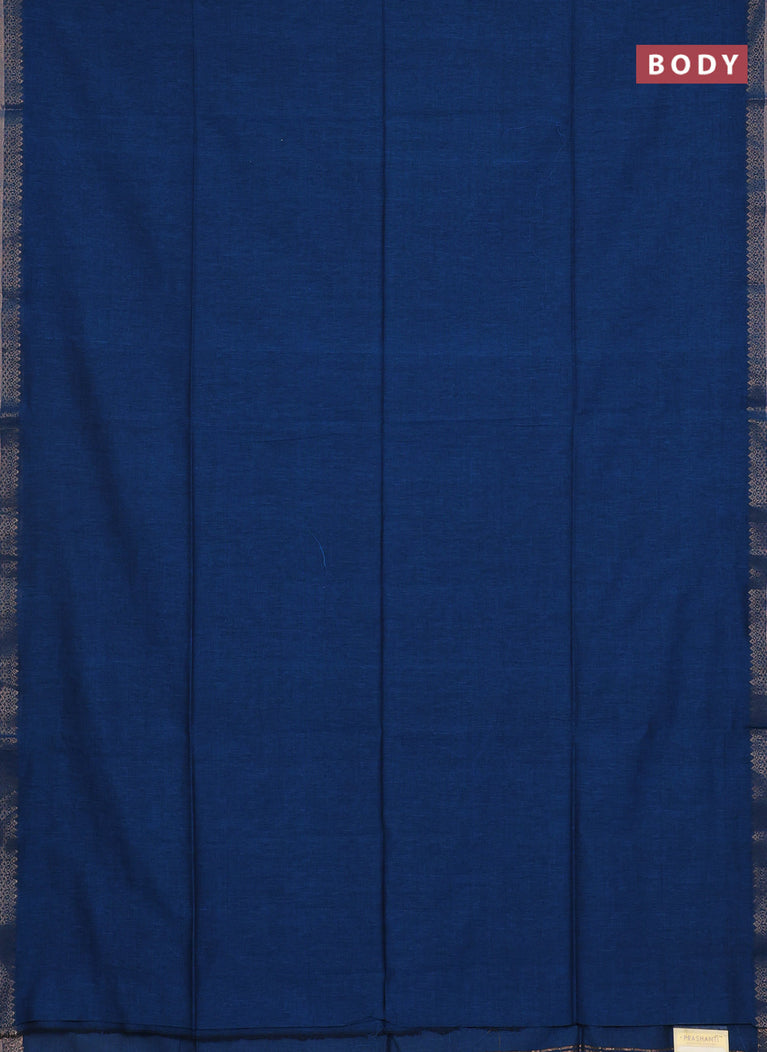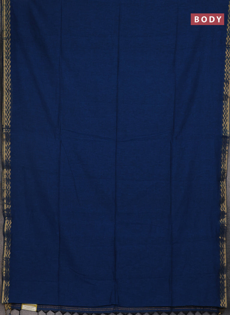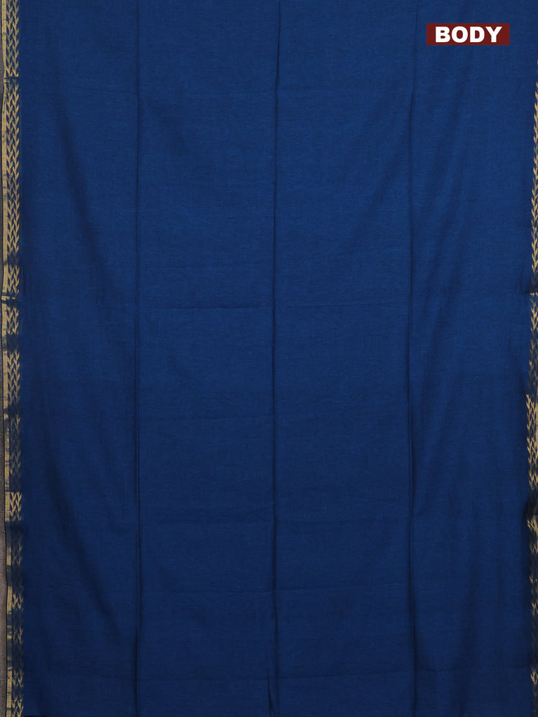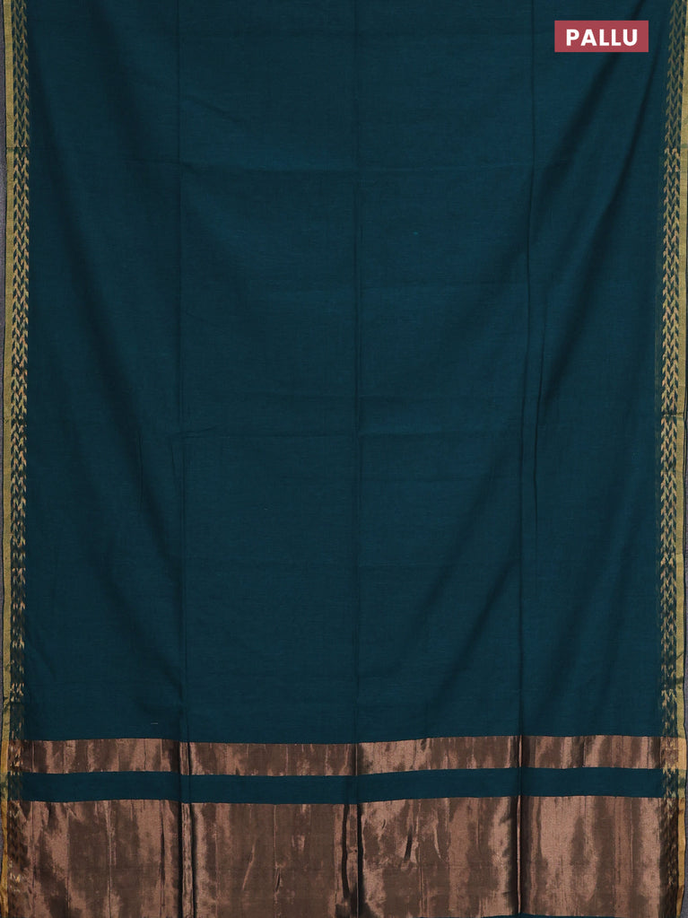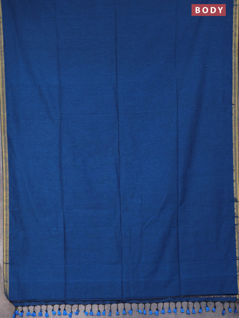 Bengal soft cotton saree peacock blue with plain body and zari woven piping border