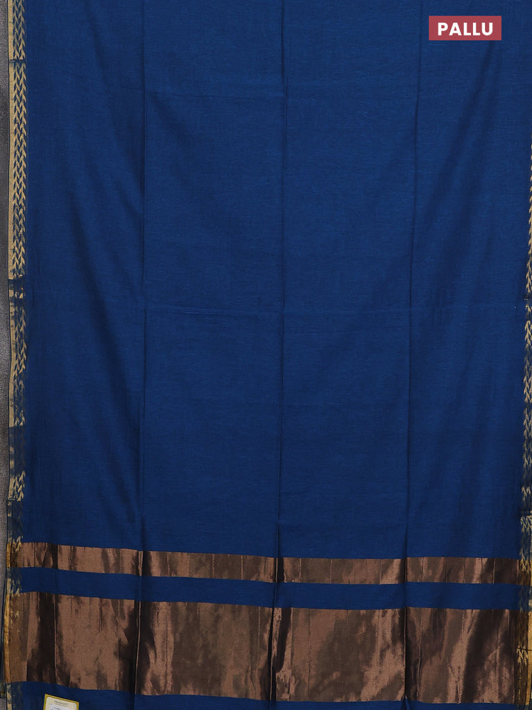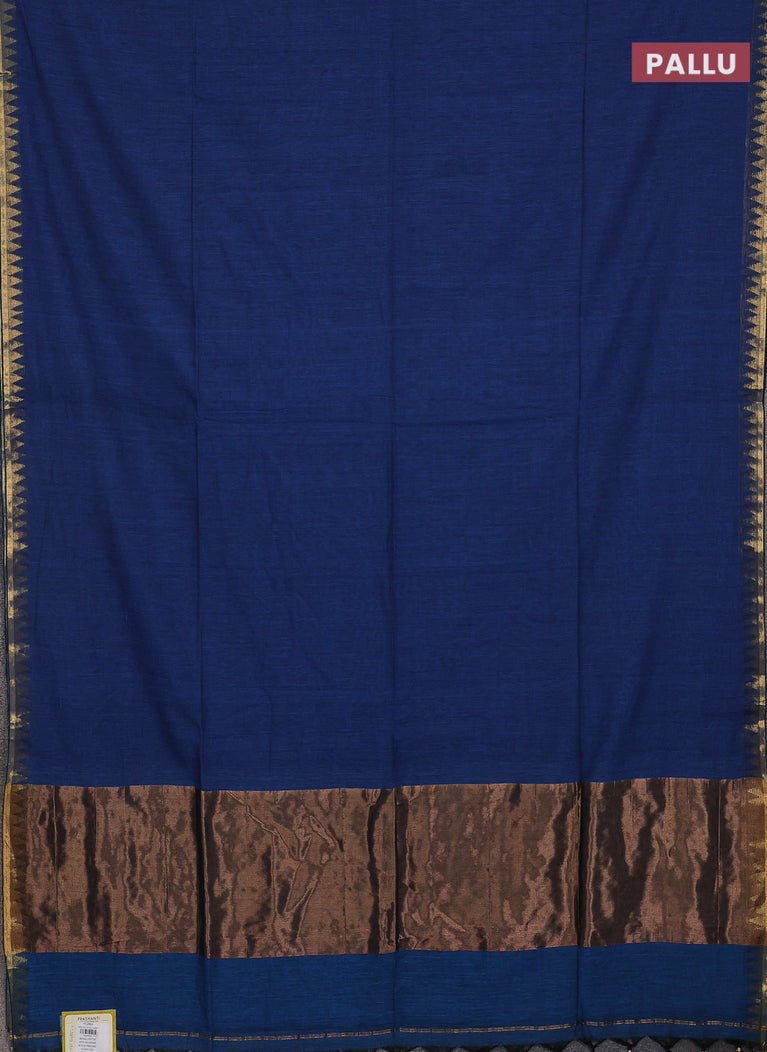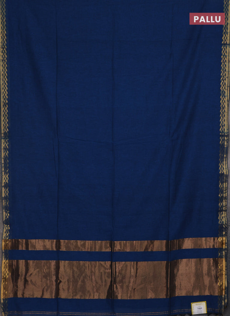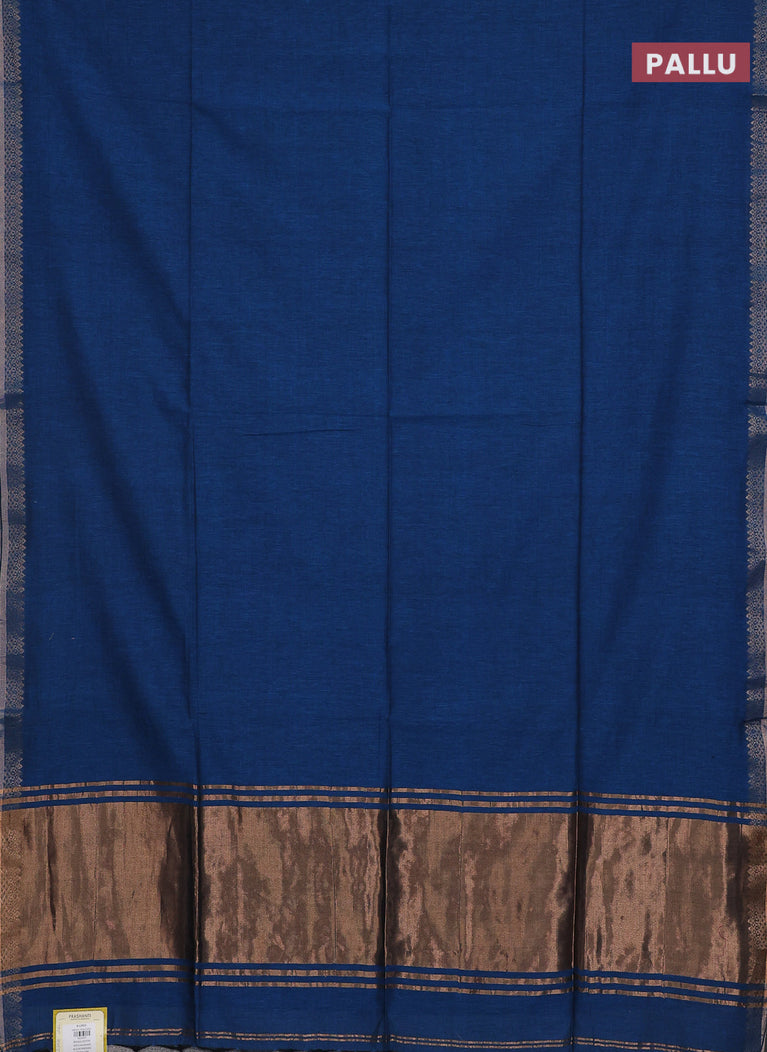 Bengal soft cotton saree peacock blue with plain body and zari woven piping border