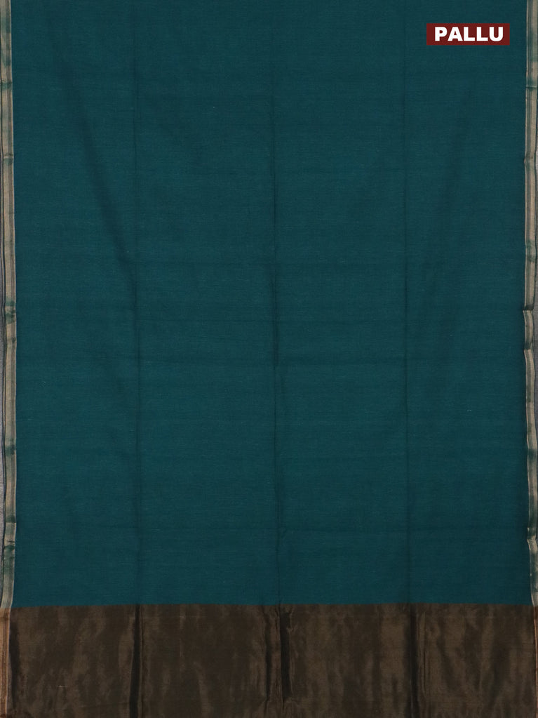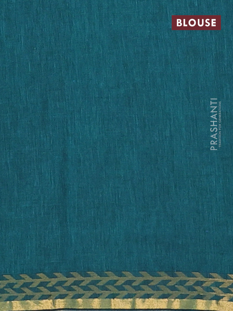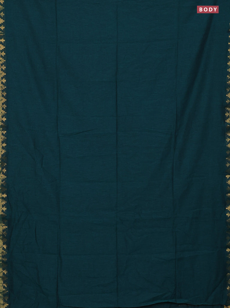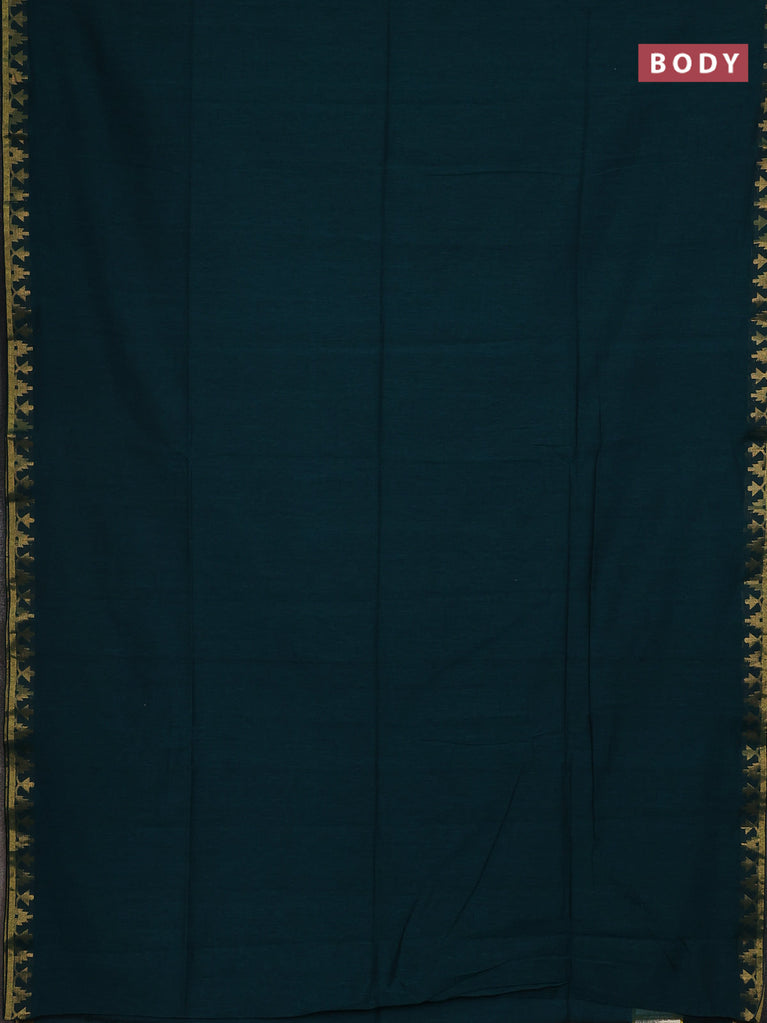 Bengal soft cotton saree peacock green and blue with plain body and zari woven border