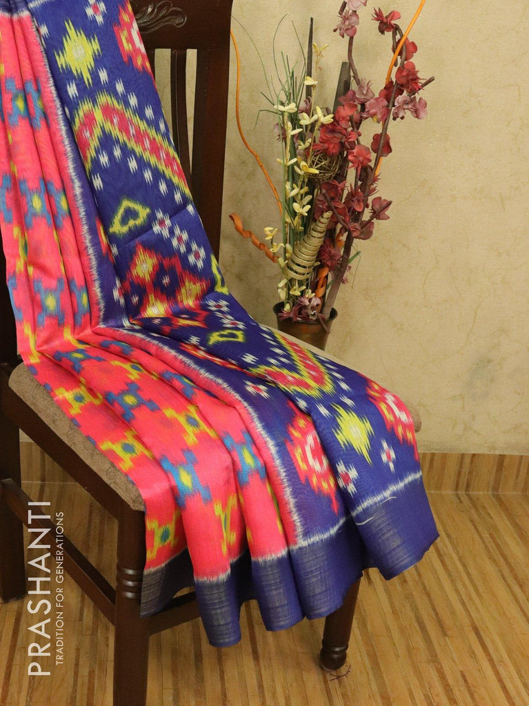 Bhagalpuri saree blue and pink with allover ikat prints and simple zari border