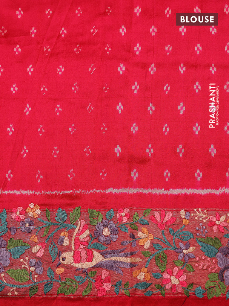 Brown & Pink Pochampally Silk saree with Border Embroidery & pichwai pallu